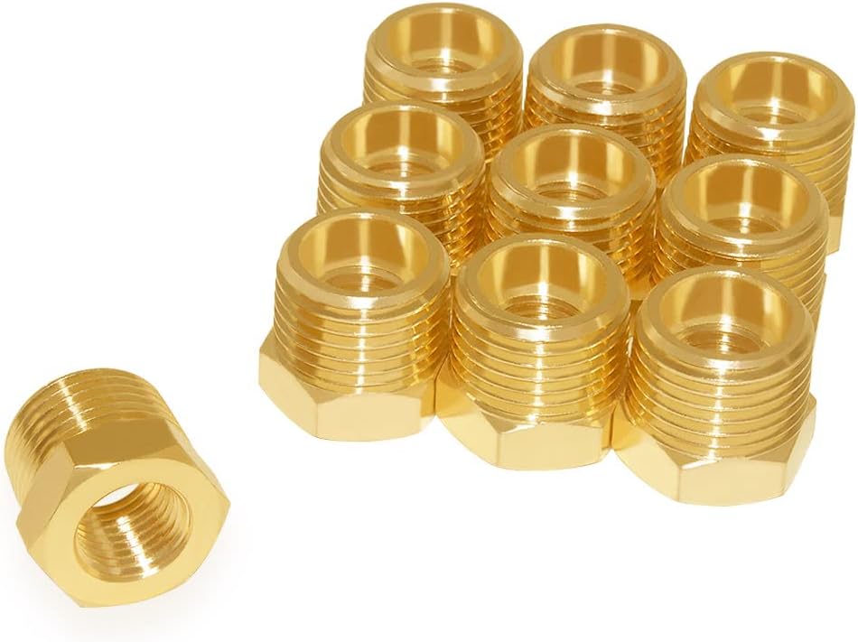Hooshing 10Pcs Brass Reducer Hex Bushing 3/8″ NPT Male x 1/4″ NPT Female Threaded Pipe Fitting Hose Tube Adapter Convert